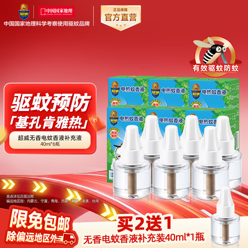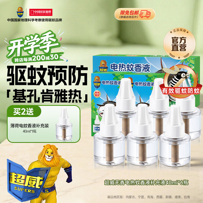 超威电热蚊香液家用插电式驱蚊器加热器套装灭蚊器 【驱蚊360晚-买2送1液】6瓶补液