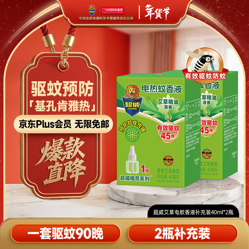 超威电蚊香液基孔肯雅热非无香驱蚊灭蚊防蚊液90晚补充液2瓶无加热器