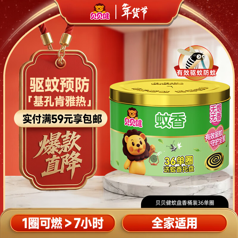 贝贝健超威蚊香盘 36圈*1盒 基孔肯雅热防蚊灭蚊驱蚊盘香无烟无香