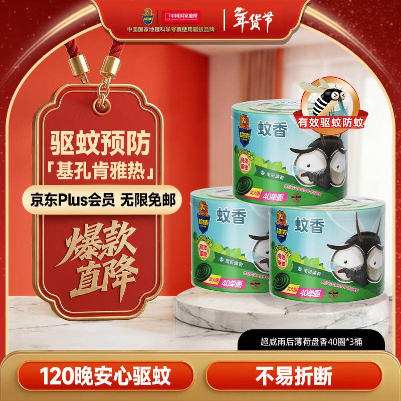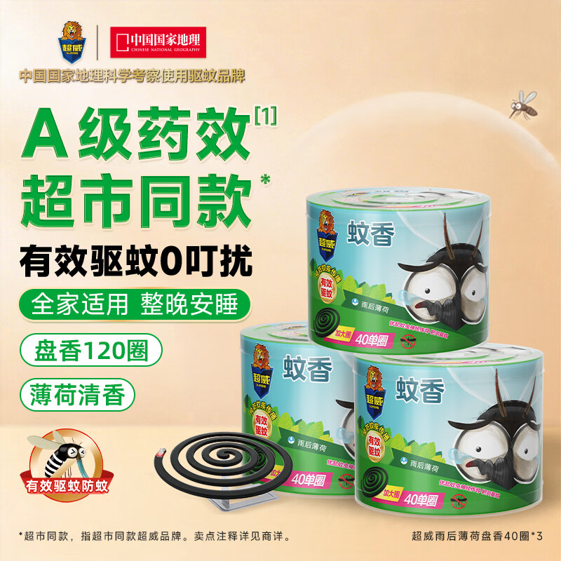 超威蚊香盘40圈*3盒基孔肯雅热户外微烟蚊香防蚊驱蚊灭蚊盘香薄荷清香