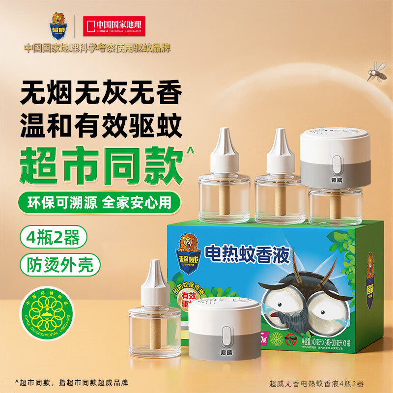 超威电蚊香液基孔肯雅热灭蚊器无香驱蚊液防蚊补充液4瓶1加热器