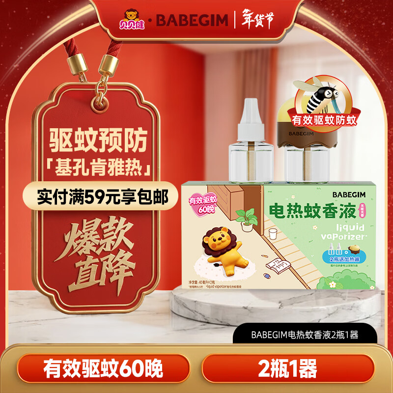超威BABEGIM电蚊香液基孔肯雅热无香驱蚊液驱蚊60晚防蚊灭蚊液2瓶1器
