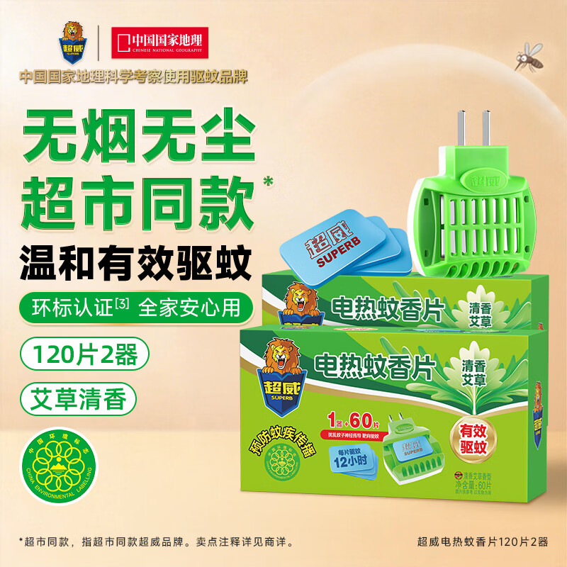 超威电热蚊香片基孔肯雅热灭蚊器非无香防蚊灭蚊片补充装120片2加热器