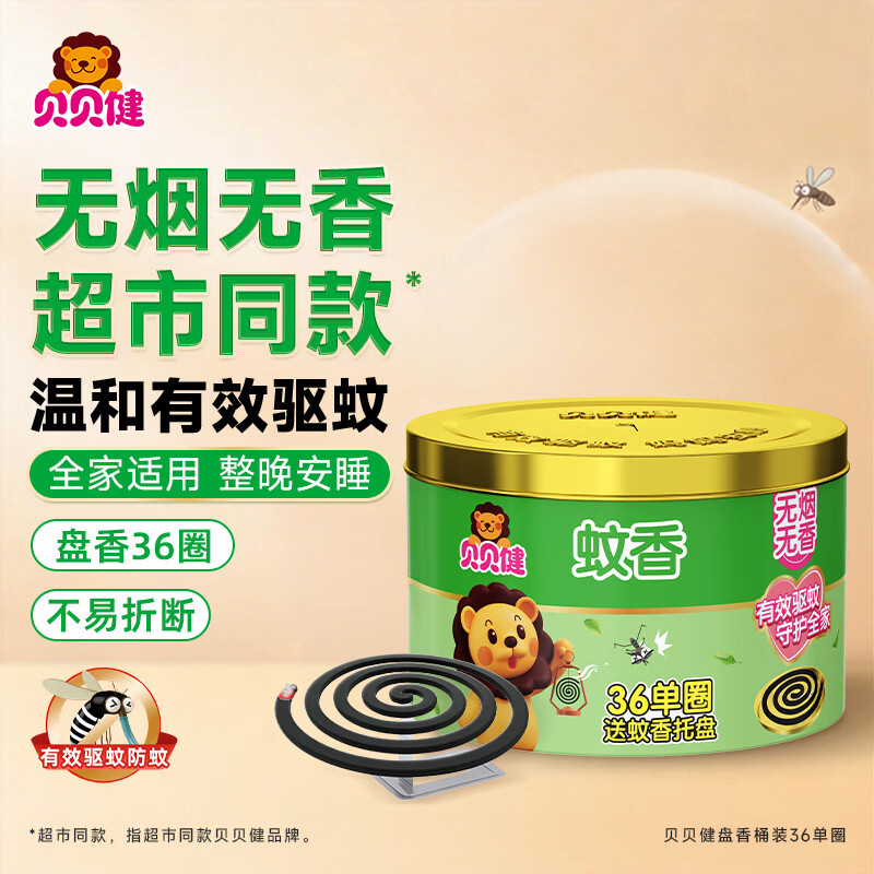 贝贝健超威蚊香盘 36圈*1桶 基孔肯雅热防蚊灭蚊驱蚊盘香无烟无香