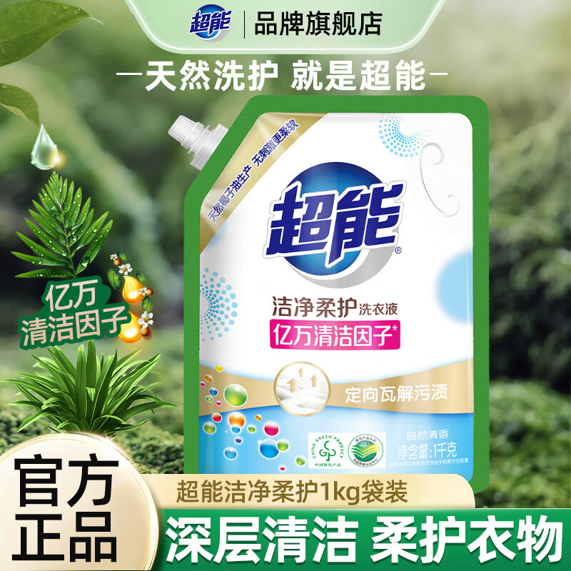 超能洁净柔护洗衣液袋装补充装持久留香整箱批男女家用实惠装正品 【2斤袋装有出液口】1kg*1袋