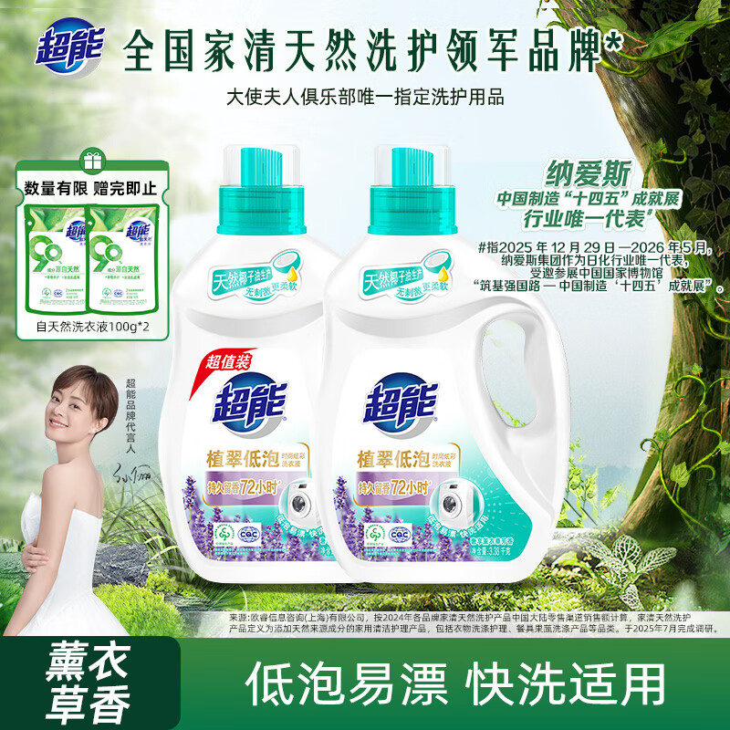 超能 植翠洗衣液(时尚炫彩) 薰衣草香 3.38kg*2瓶 天然椰油