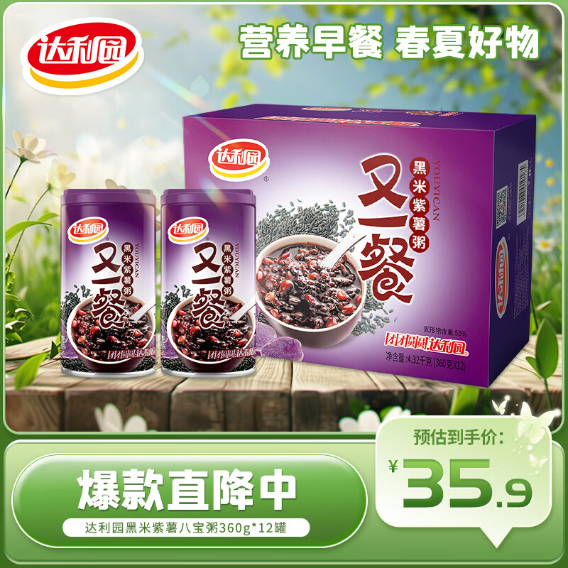 达利园又一餐黑米紫薯粥360g*12罐八宝粥礼盒装方便 又一餐黑米紫薯八宝粥