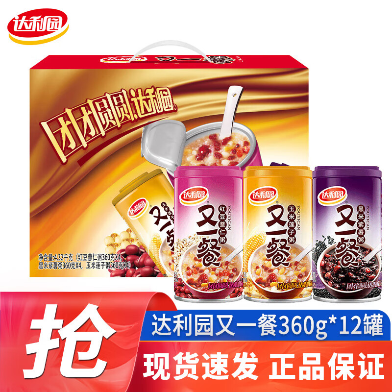 达利园又一餐黑米紫薯八宝粥送礼速食早餐粥罐头360g*12罐整箱年货礼盒