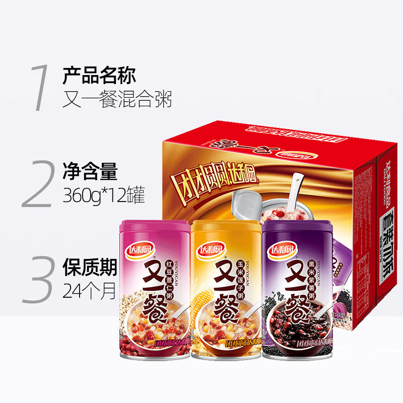 达利园厂家直供八宝粥又一餐混合360g*12罐整箱黑米早餐粥即食粥 【整箱】达利园又一餐八宝粥混合口味360g*12
