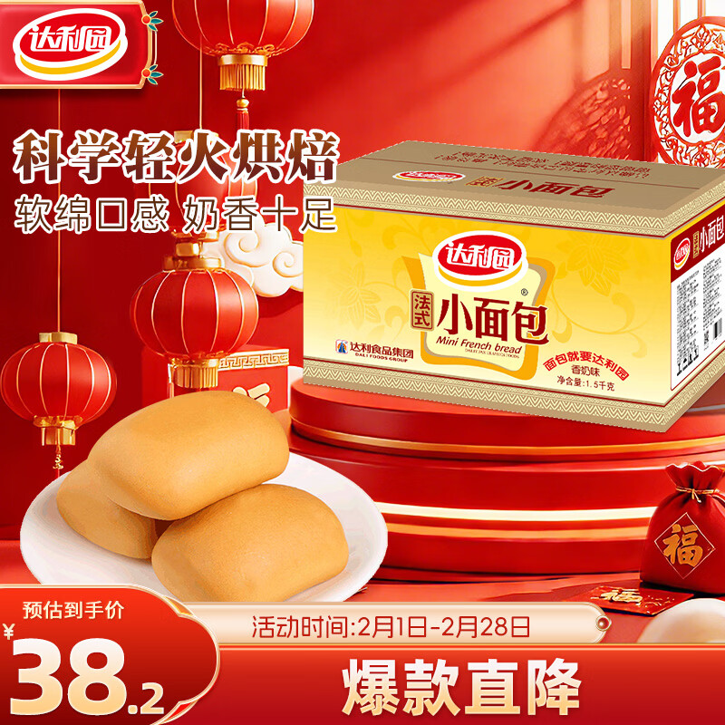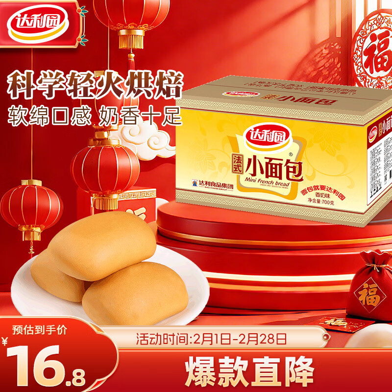 达利园法式小面包软面包整箱早餐面包糕点心充饥办公室休闲食品零食小吃 【2箱*700g】小面包奶香味
