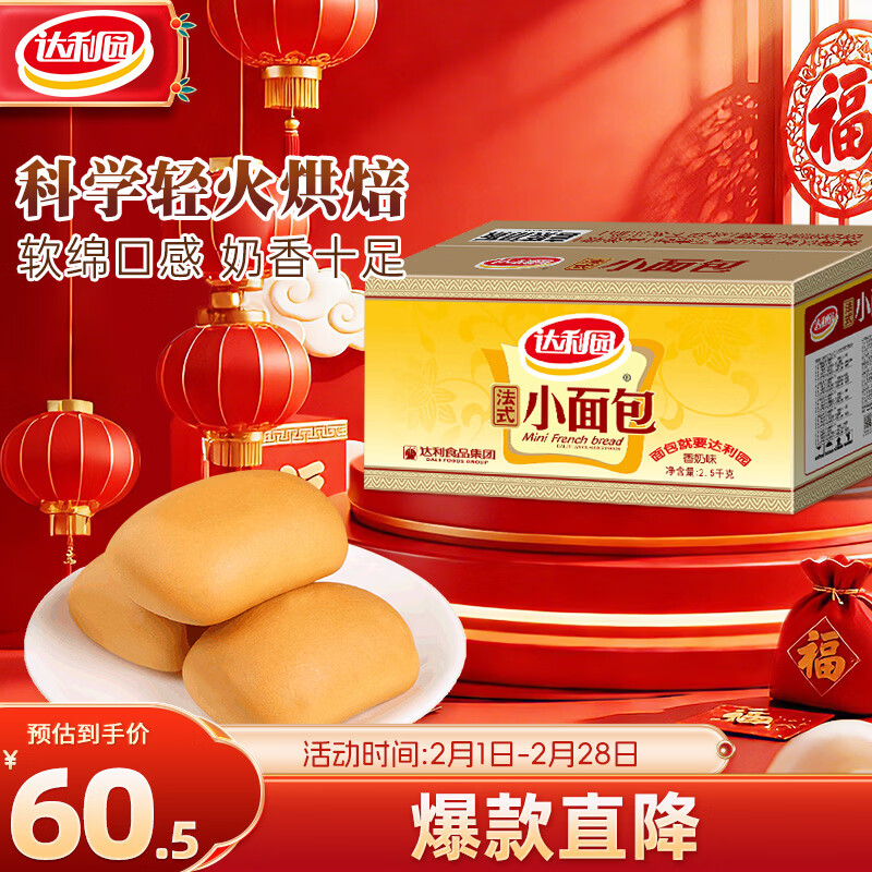 达利园法式小面包香奶味休闲零食整箱装办公室代餐面包营养早餐X 法式小面包约120g
