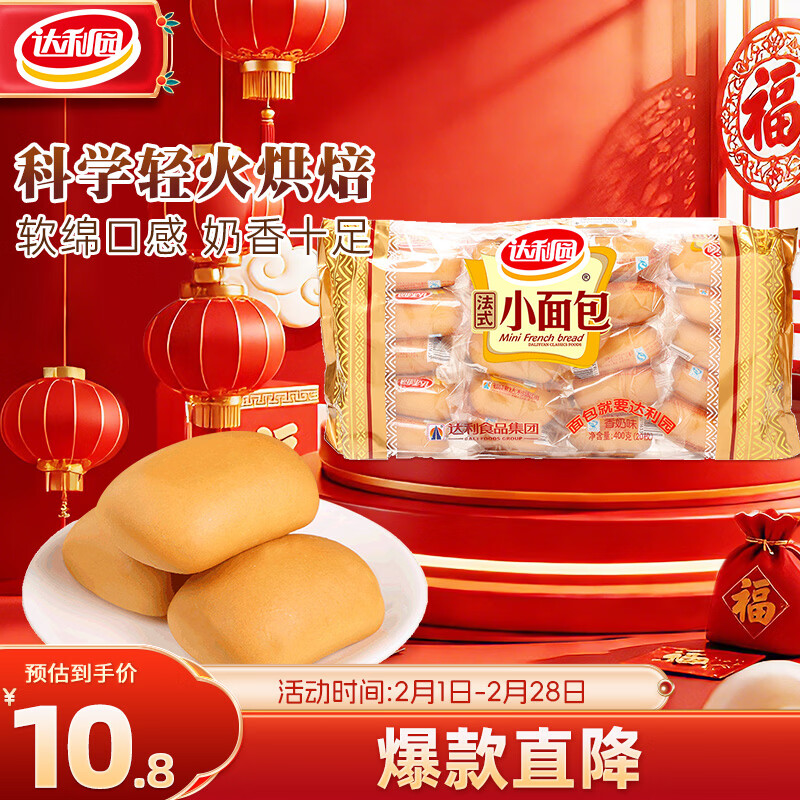 达利园 法式小面包整箱健康营养早餐点心速食懒人小吃货网红零食品 达利园法式小面包含箱800g
