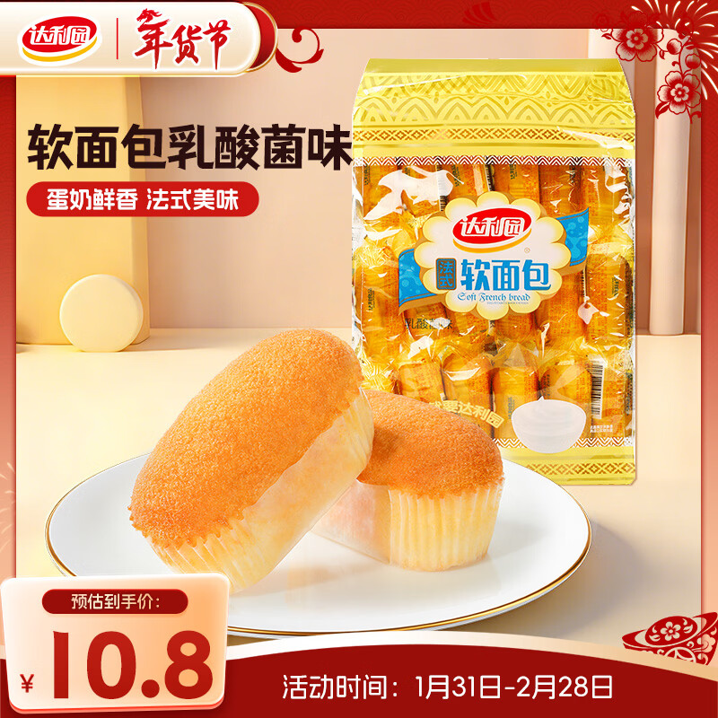达利园软面包乳酸菌味360g营养早餐代餐小面包网红休闲零食小吃