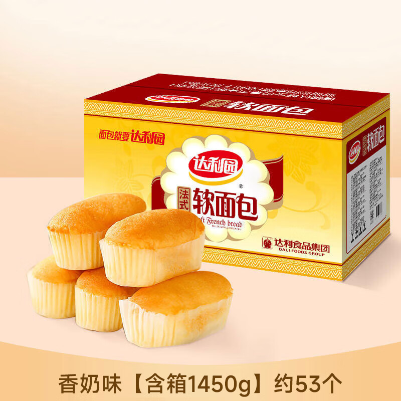 达利园法式软面包小面包学生营养早餐小包装整箱办公室面包糕点零食批发 香奶味500g(1斤)/约22包