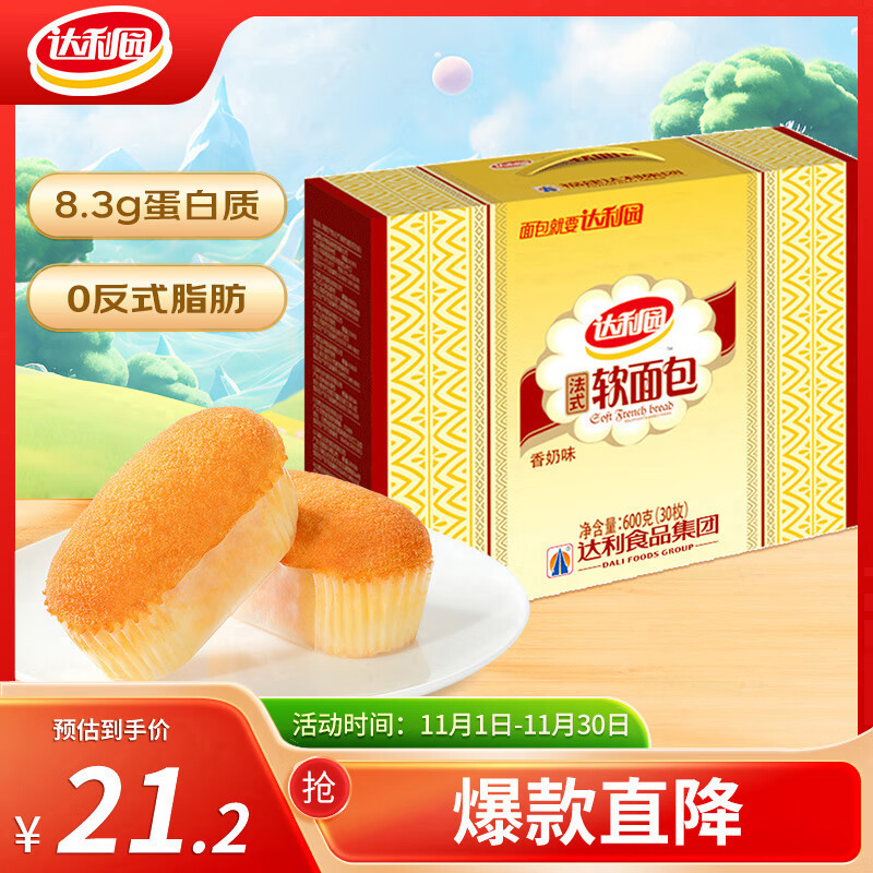 达利园法式软面包香奶味600g学生充饥零食点心办公室早餐代餐