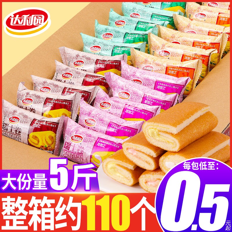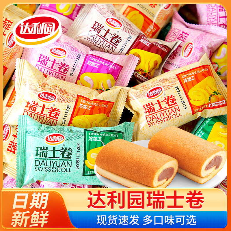 达利园瑞士卷毛巾卷早餐面包充饥夜宵代餐饱腹零食小吃休闲食品年货批发 【1斤】随机混合500g(约23包)