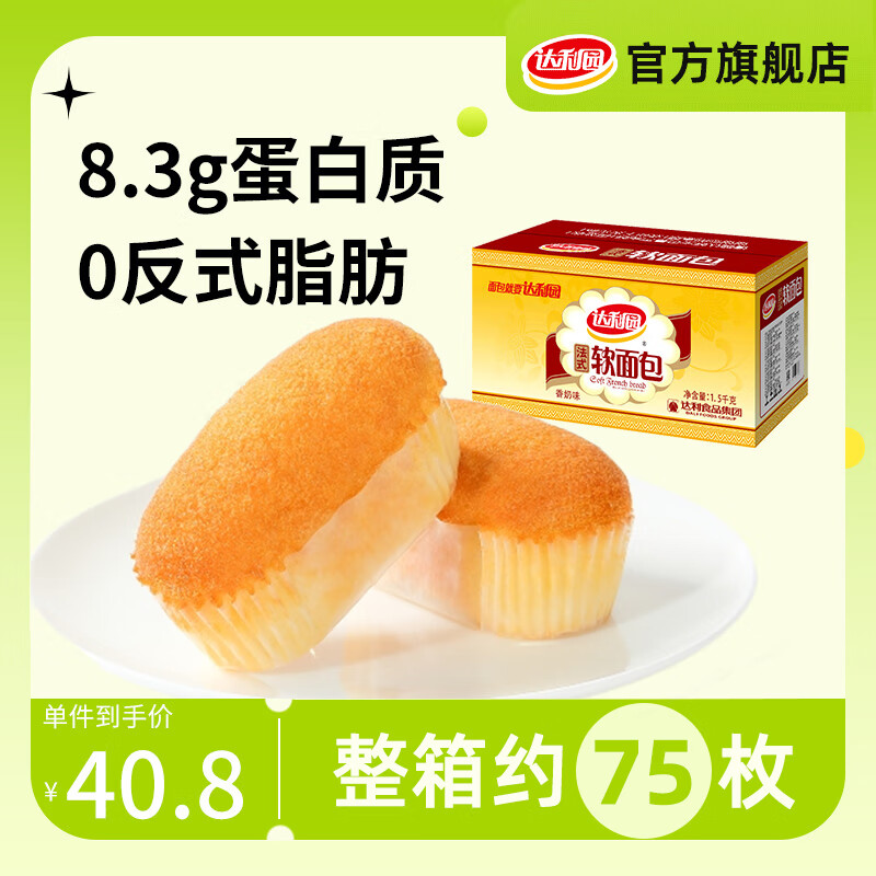 达利园糕点面包1500g整箱早餐代餐蛋糕小面包瑞士卷休闲零食点心食品 法式软面包香奶味1500g