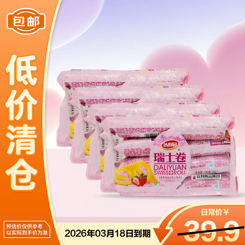 达利园瑞士卷草莓味 160g*5袋夹心面包早餐糕点健康零食【临期清仓】