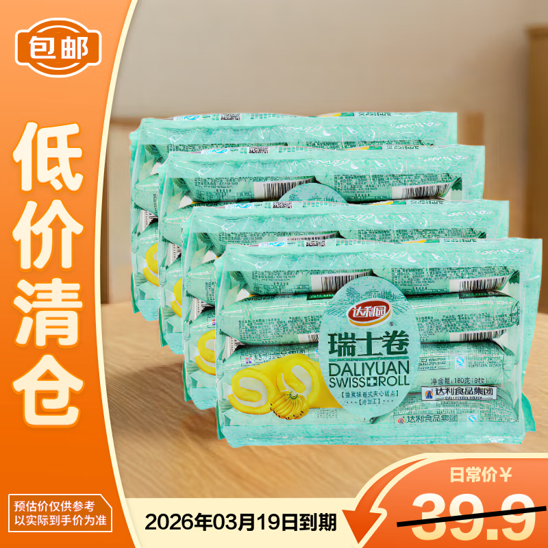 达利园瑞士卷香蕉味 160g*5袋夹心面包早餐糕点健康零食【临期清仓】