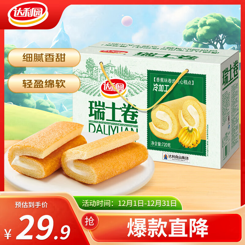 达利园面包瑞士卷香蕉味720g礼盒装零食蛋糕卷代餐(新老包装随机发货)