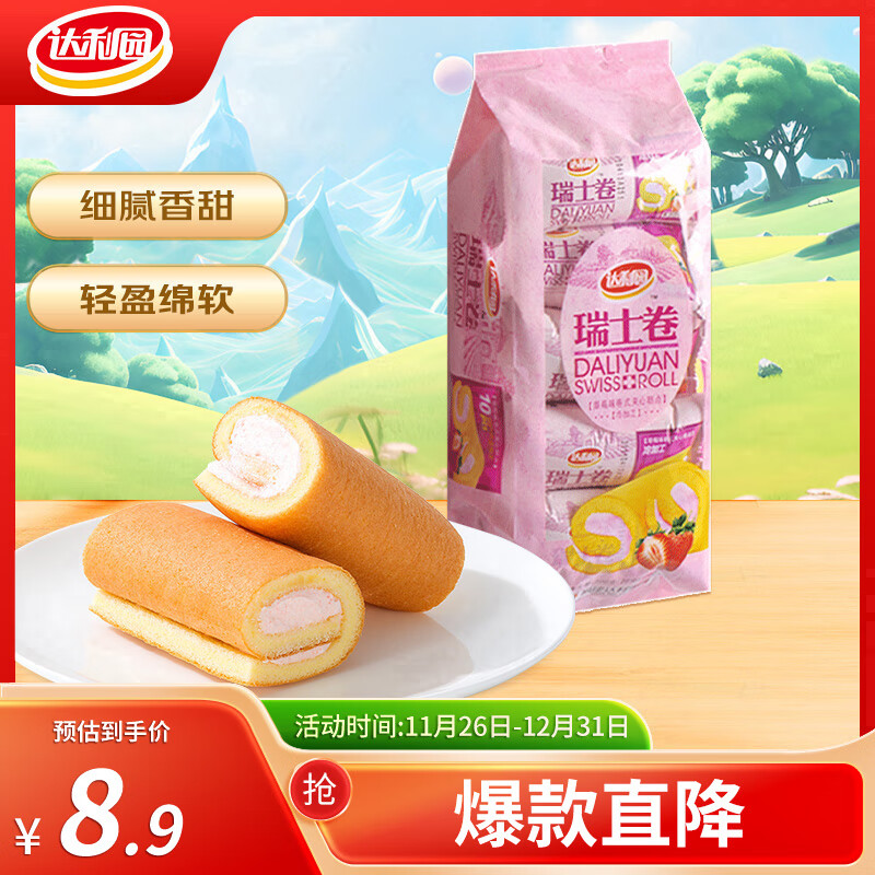 达利园瑞士卷240g/12枚早餐面包夹心蛋糕休闲零食毛巾卷甜品小吃多口味 草莓味240g(12枚)