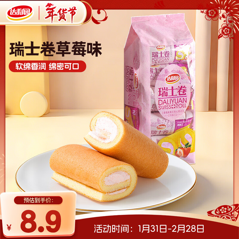 达利园瑞士卷草莓味200g饼干蛋糕卷零食早餐面包办公室点心