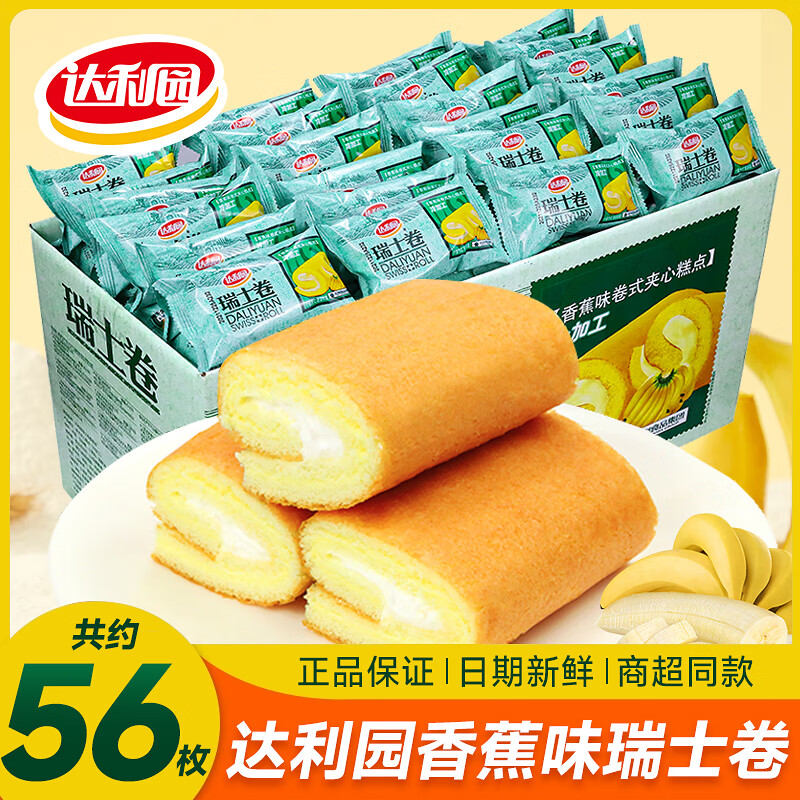 达利园 瑞士卷蛋糕面包整箱早餐速食充饥夜宵代餐零食小吃休闲食品 瑞士卷香蕉味含箱1450g(约56枚)