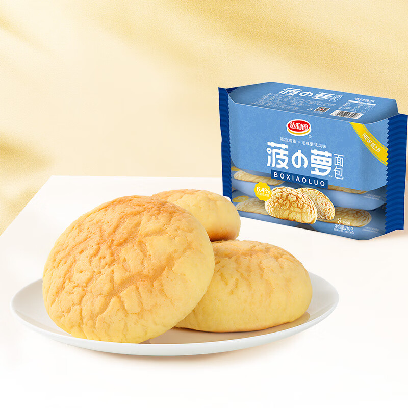 达利园达利园菠萝面包240g菠小萝零食早餐蜂蜜鸡蛋港式手撕包蛋糕 菠小萝面包240gx4袋