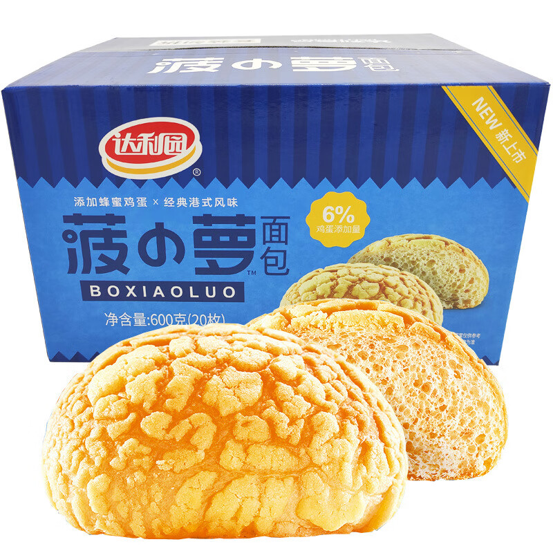 达利园菠小萝面包零食菠萝包送礼手撕包小面包办公室小点心早餐节日食品 600g 菠小萝面包(整箱20枚)600g