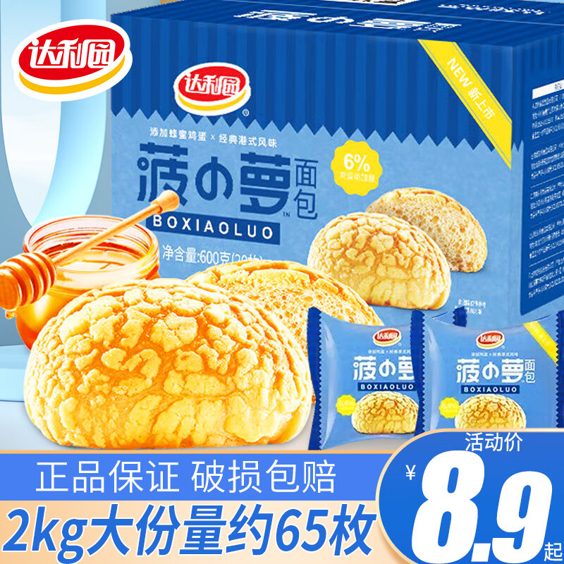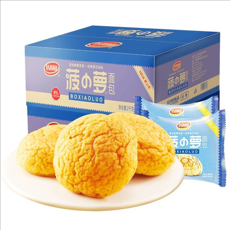 达利园菠小萝4斤面包早餐食品蜂蜜鸡蛋手撕蛋糕点心休闲小吃零食 达利园菠小萝面包 整件含箱2000g