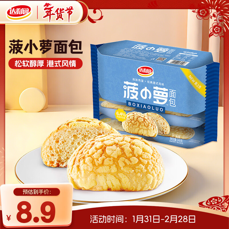 达利园菠小萝面包休闲零食送礼手撕包小面包早餐食品 菠小萝30g*8枚/袋装