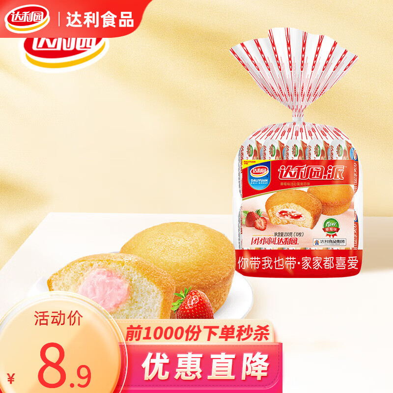 达利园蛋黄派一整箱鸡蛋糕营养早餐办公室学生休闲零食糕点夹心蛋糕批发 草莓派230g【10枚尝鲜】