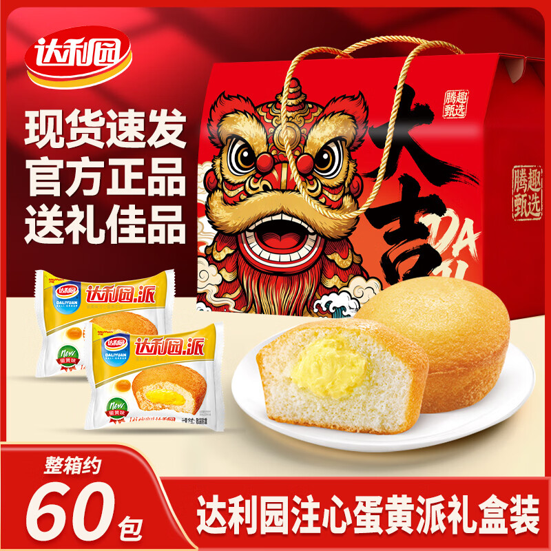 达利园注心蛋黄派送礼休闲零食品蛋糕点心早餐面包春节年货 达利园蛋黄派1.41kg【甄选礼盒】
