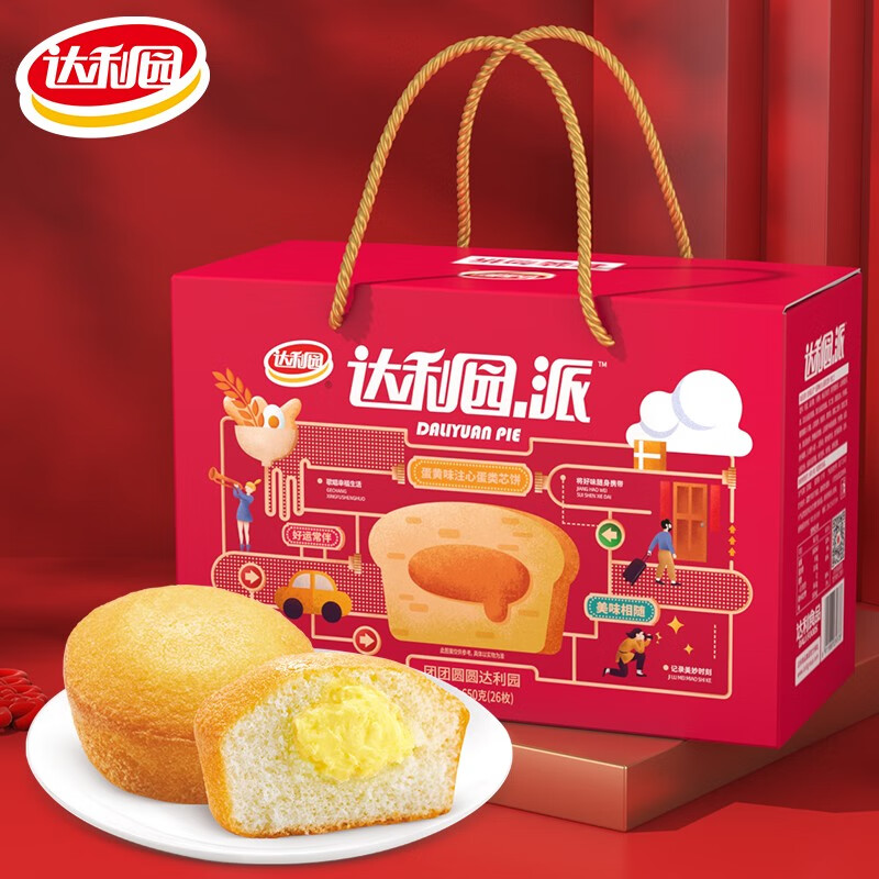 达利园注心蛋黄派650g年货礼盒装早餐面包休闲零食(新老包装随机发货)
