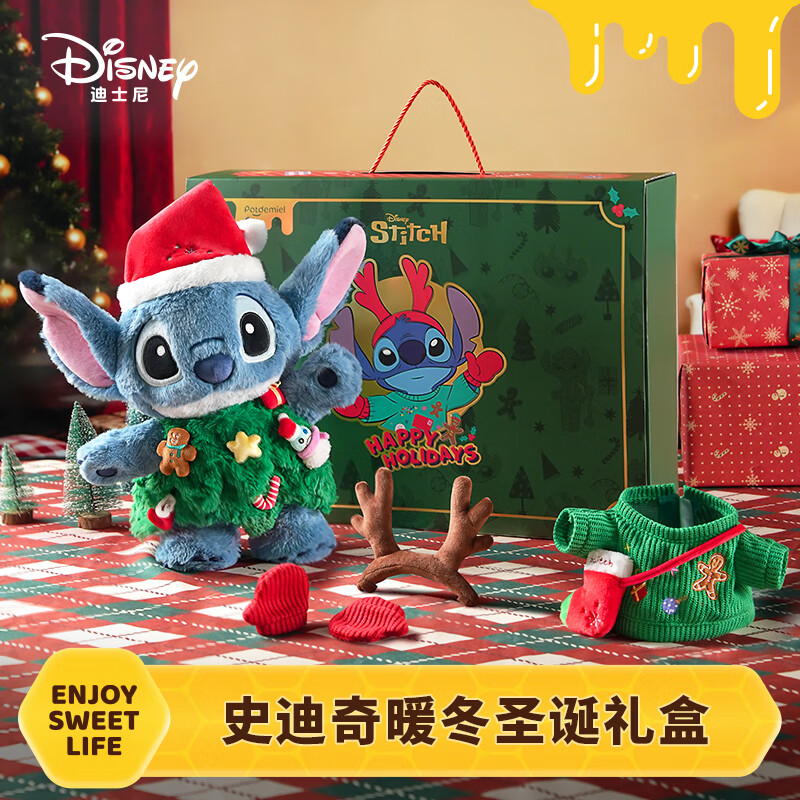 迪士尼(Disney)史迪奇带骨架圣诞礼盒史迪仔玩偶毛绒玩具女孩圣诞礼物生日礼物女