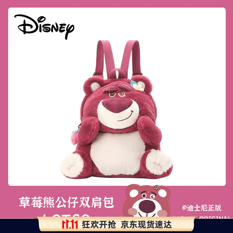 迪士尼(Disney)草莓熊毛绒双肩包公仔玩偶摆件户外送孩子同学女友生日礼物
