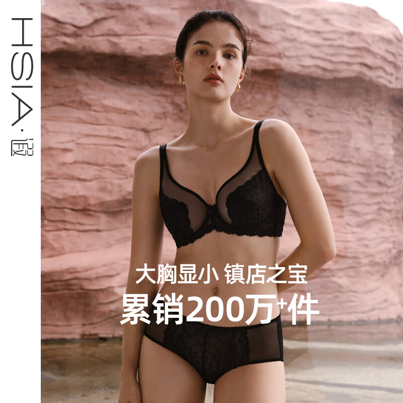 遐(HSIA)【点彩】法式内衣薄款双肩带蕾丝大胸显小文胸女 黑色 85D