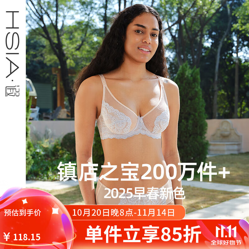 遐(HSIA)【抹茶】全罩杯防下垂轻薄内衣蕾丝防凸点大胸显小女 栗白 85B