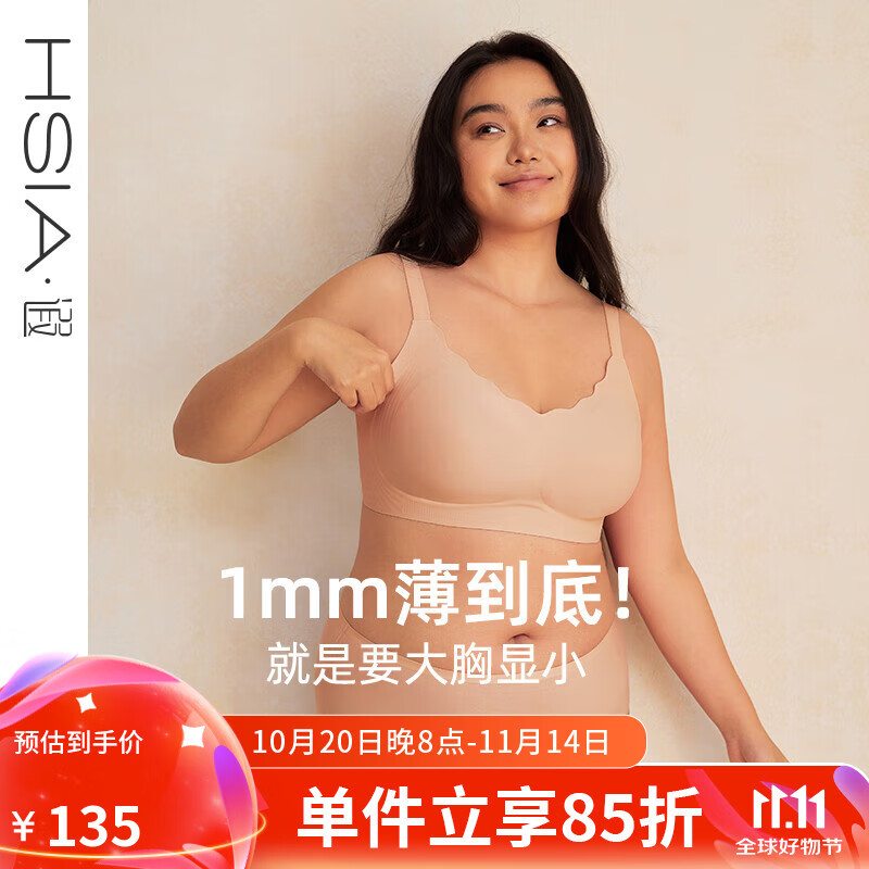 遐(HSIA)【光面新主张】包容承托无痕内衣女全罩杯大胸显小文胸 肤色 80B