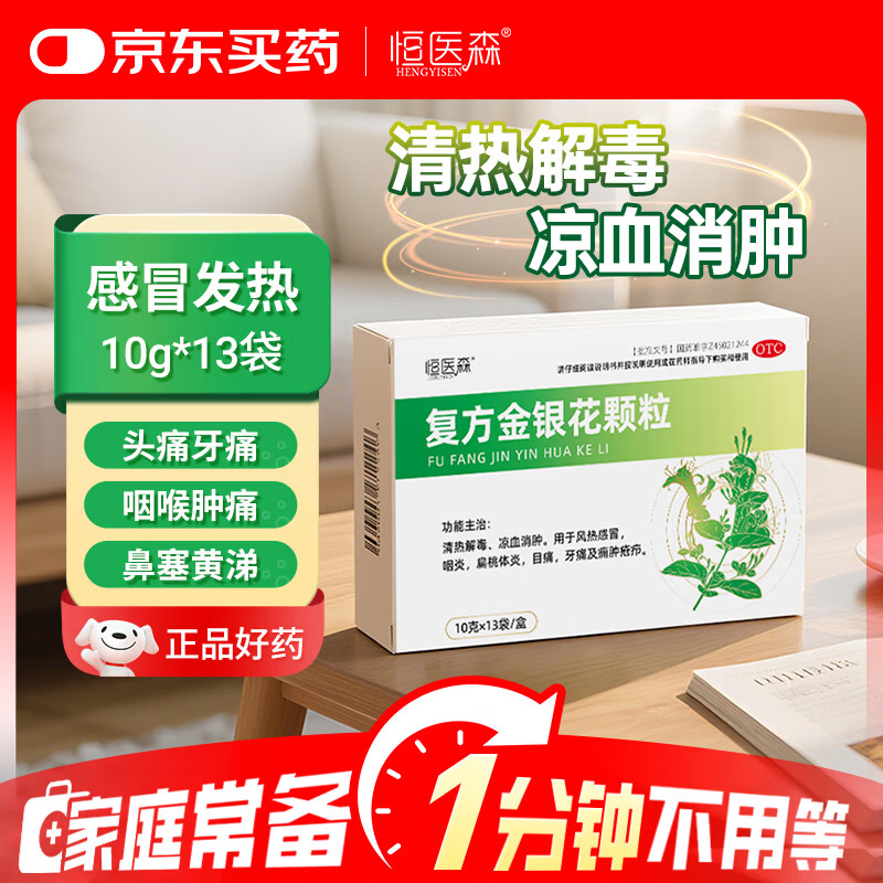 恒医森 [大规格更优惠]复方金银花颗粒 10g*13袋/盒 扁桃体发炎 喉咙痛 咽喉肿痛 咽干咽痛 感冒咳嗽用药