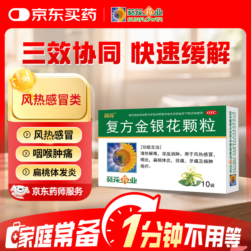 葵花复方金银花颗粒 10g*10袋 清热解毒 咽炎 扁桃体发炎 喉咙痛咽喉肿痛 降火去火排毒 牙龈肿痛