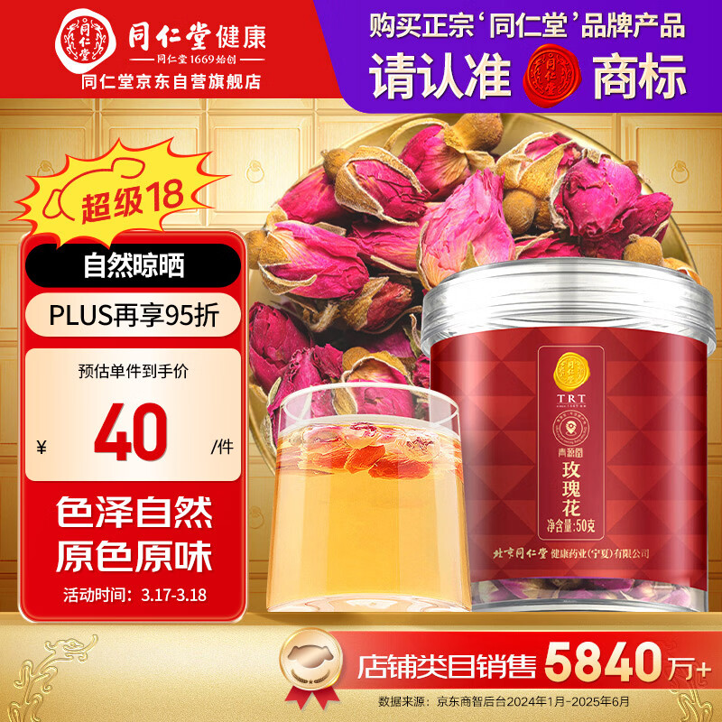 同仁堂品牌 北京同仁堂玫瑰花50g山东重瓣玫瑰花茶可搭金银花 养生茶