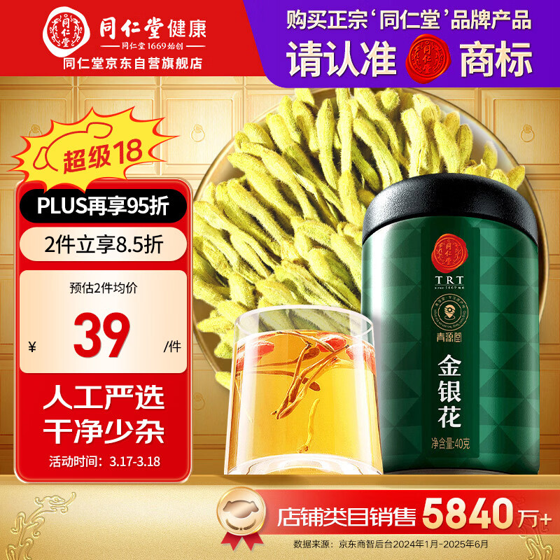 同仁堂品牌 北京同仁堂金银花茶40克 金银花干金银花泡水搭化橘红养生茶