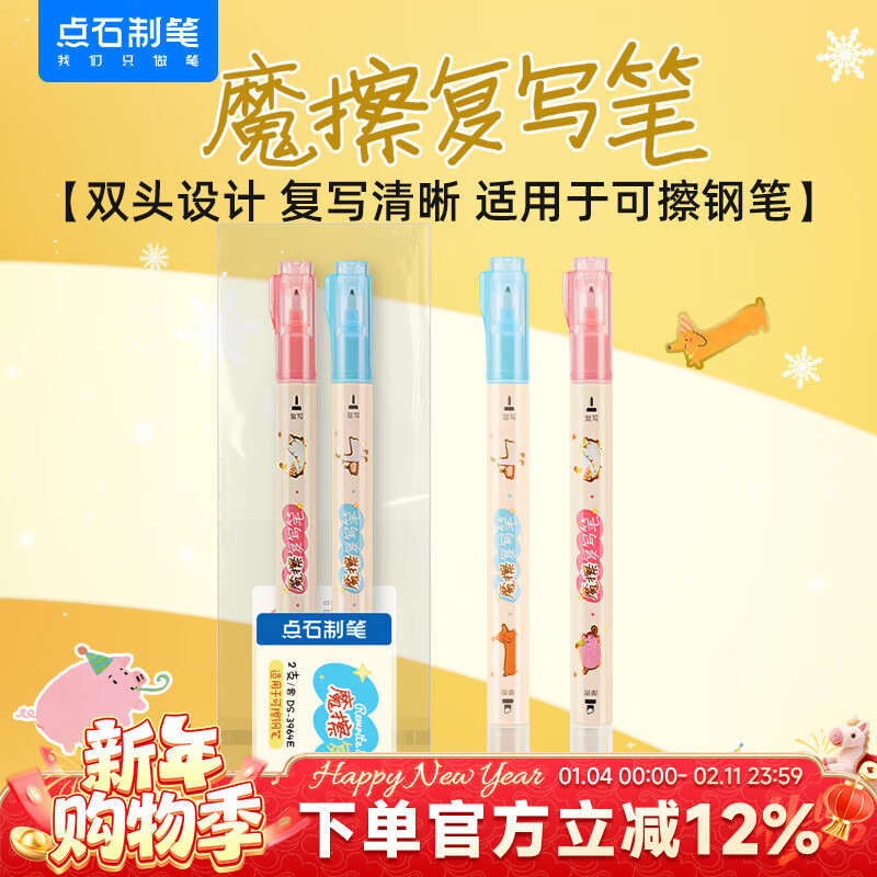 点石消字笔魔擦复写笔魔笔可擦墨钢笔适用可擦蓝可擦墨蓝双头书法练字3964E 2支装