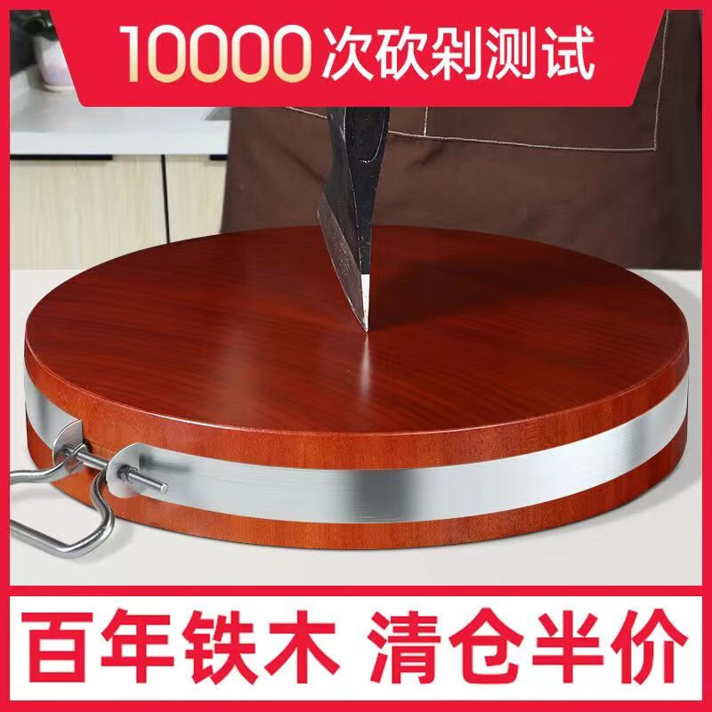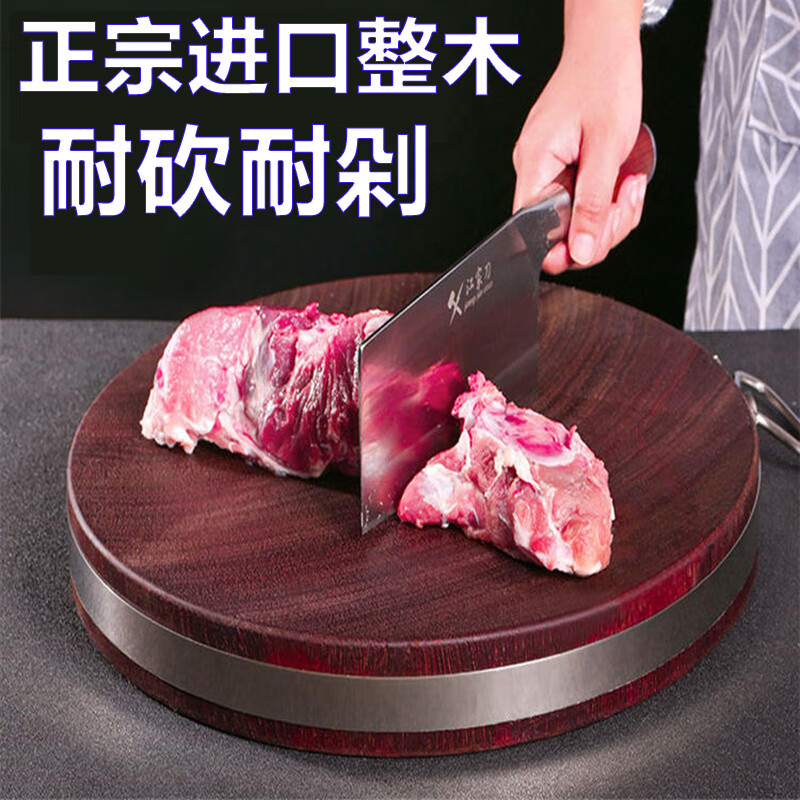 奈迅进口红铁木菜板砧板正宗越南加厚切菜刀板整木实木防霉圆形家用 随机款正宗整木体验款