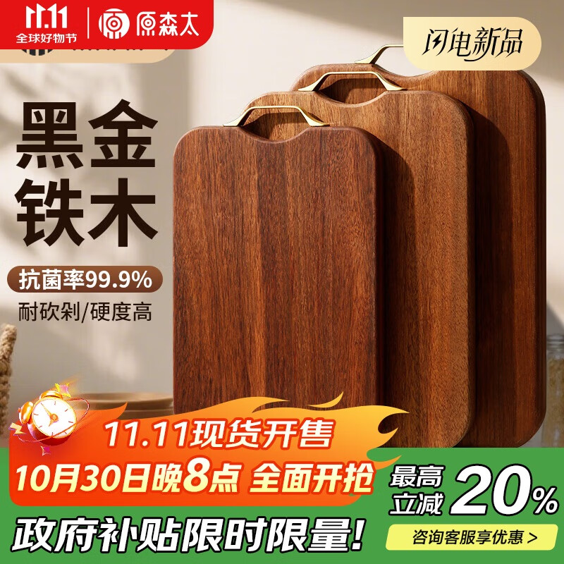 原森太黑金铁木实木菜板加厚砧板防霉抗菌案板家用厨房砍切菜板