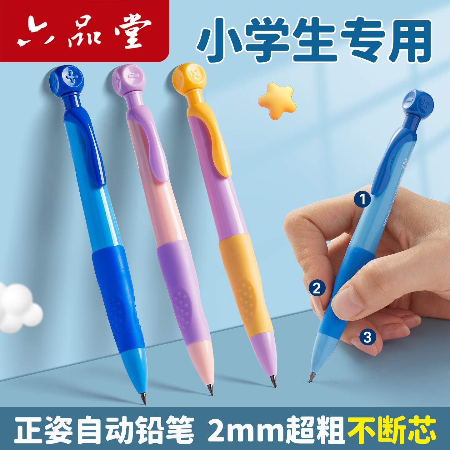 六品堂自动铅笔小学生专用一二年级粗芯高颜值自动笔正姿软握洞洞儿童入门按动控笔训练铅笔 乐炫矫姿转转活动铅笔紫色*1支 HB