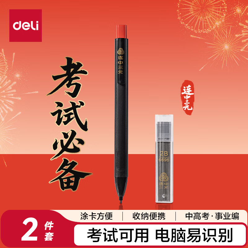 得力(deli)连中三元填涂卡笔套装2件套 中高考专用答题卡2B活铅笔铅芯 考试必备中高考加油SH253