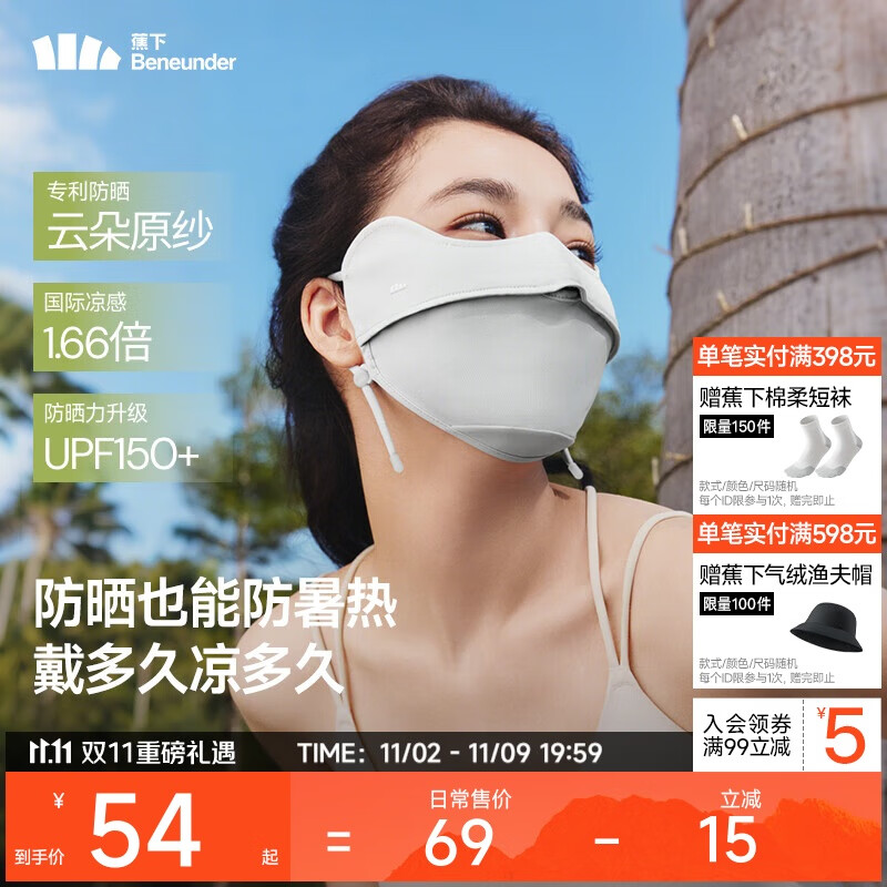 蕉下(beneunder)防晒口罩女防晒医美面罩全脸防紫外线高颜值脸基尼骑行护脸谧黛粉
