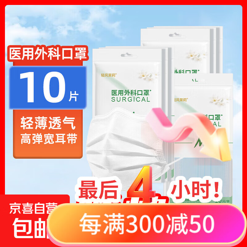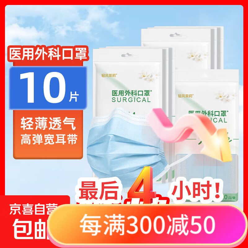 轻风茉莉医用外科口罩防晒花粉一次性加宽耳带防尘口罩 【试用爆款】白色10只/1袋